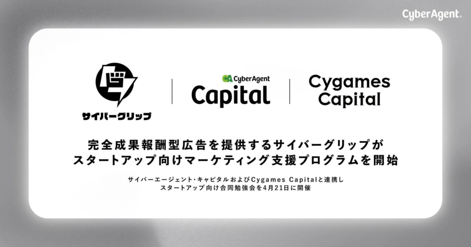 株式会社サイバーグリップ 代表取締役社長の松橋知広氏は、「スタートアップ企業のみなさまが命懸けで創り上げたプロダクトを、世の中に最速で広めることが我々サイバーグリップの使命です。VCとしてシード期から起業家に伴走するサイバーエージェント・キャピタルおよびCygames Capitalと、広告代理店として実務を担うサイバーグリップがタッグを組むことで、資金調達からマーケティング実行まで、サイバーエージェントグループの『ALLの力』でスタートアップの成長を底上げします。次世代を担う企業のみなさまと、ご一緒できることを心から楽しみにしております。」とコメントしています。