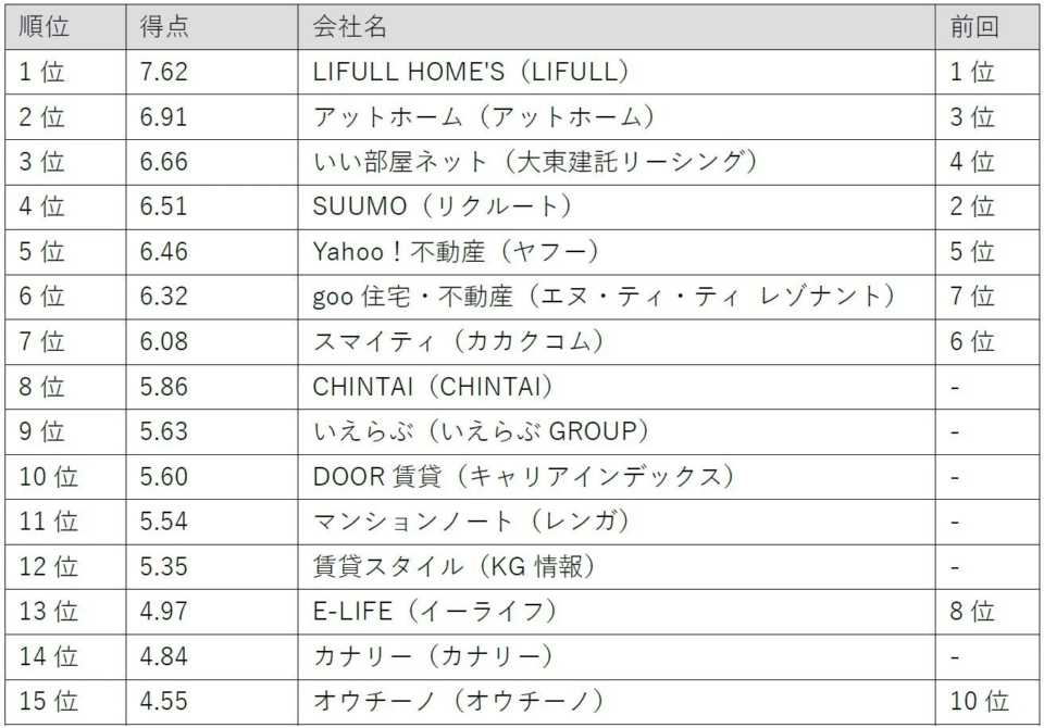 「Gomez賃貸不動産情報スマホサイトランキング」発表!LIFULL HOME’Sが総合トップに