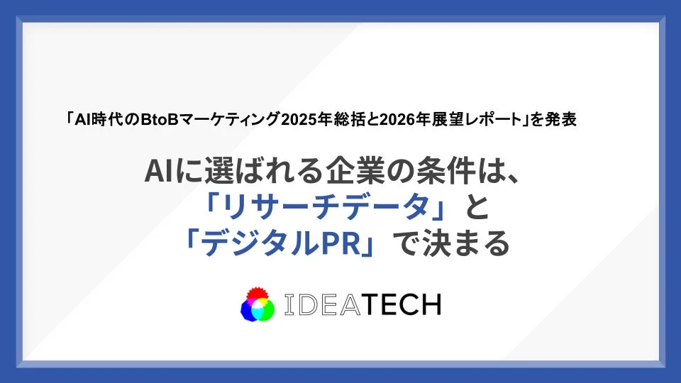 生成AIの進化は、私たちの情報収集の方法を大きく変え、BtoBマーケティングにも新たな課題と機会をもたらしています。株式会社IDEATECHが公開した「AI時代のBtoBマーケティング2025年総括と2026年展望レポート」では、この変化に対応するための戦略が詳しく解説されています。