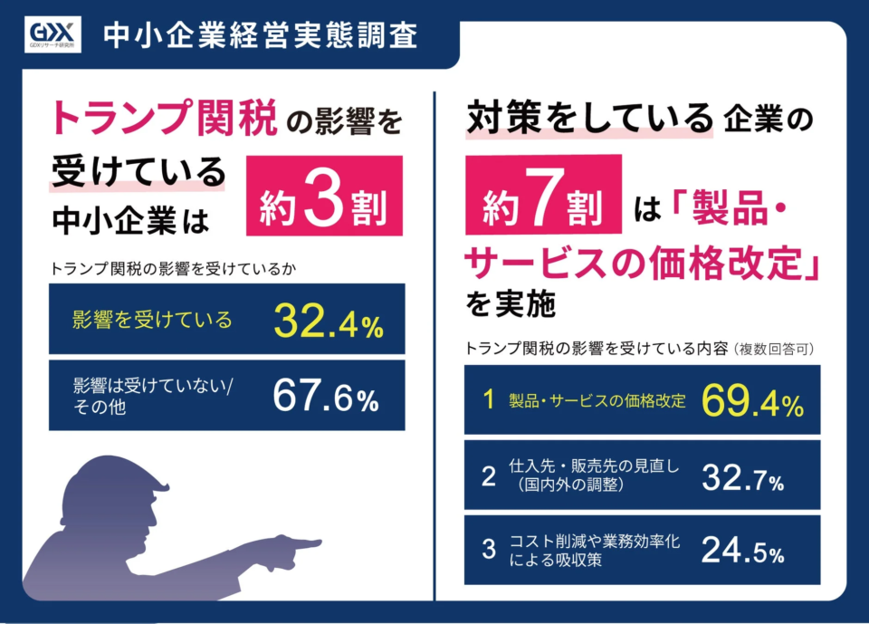 発表!トランプ関税が中小企業に約3割影響、7割が価格改定で対応するも、8割超が対策未着手…その背景に迫る!😨