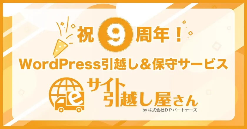 WordPressサイトのサーバー移転と保守管理サービスを提供する「サイト引越し屋さん」が、2017年1月のリリースから9周年を迎えました!株式会社DPパートナーズが運営するこのサービスは、Webサイトを安全かつ安定的に運用したい多くの企業や個人事業主から支持を集めています。