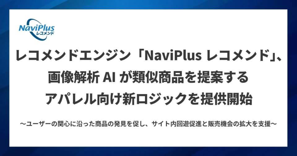 株式会社DGビジネステクノロジー(DGBT)は、ECサイト向けレコメンドエンジン「NaviPlusレコメンド」において、アパレル業界などに特化した新しいロジック「画像レコメンド」の提供を開始しました。この新機能は、生成AI技術を駆使した画像解析AIが、ユーザーの「見た目」の好みに寄り添った商品提案を実現します。