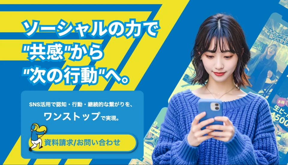 これらのサービスを組み合わせることで、採用、集客、ブランディング、リピート促進など、あらゆるマーケティング課題の解決をSNS活用で支援し、企業のビジネス成長に貢献します。