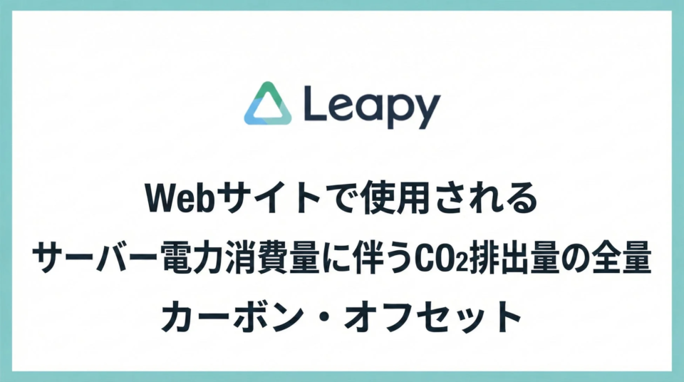 株式会社リーピーは、2026年1月から12月にかけて運営管理するお客様のWebサイトのサーバー電力消費に伴うCO2排出量(推計2t-CO2)を、「J-クレジット」制度を活用して全量オフセットすることを発表しました。この取り組みにより、対象となるWebサイトは実質的に「CO2排出ゼロ(カーボン・ニュートラル)」の状態で稼働することになります。